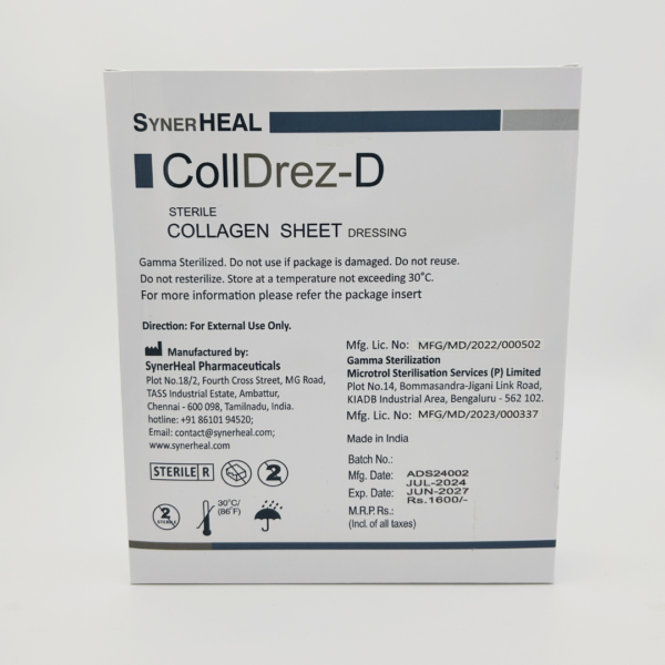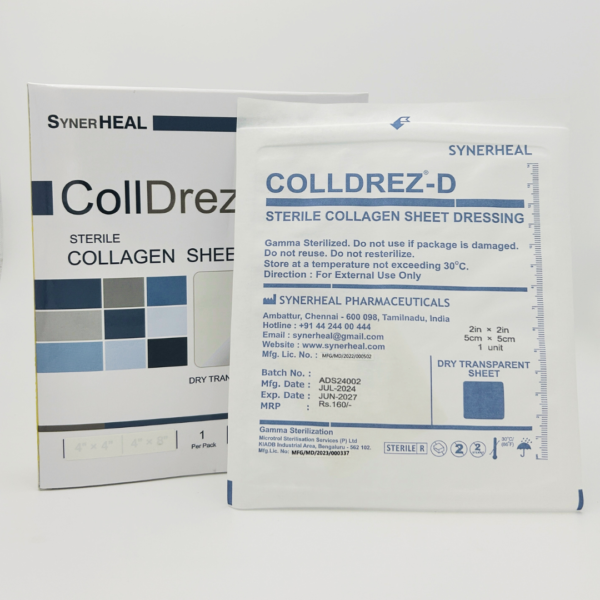 COLLDREZ D is a sterile, translucent, flexible dressing, designed to heal partial thickness burns, bed sores and skin transplants.